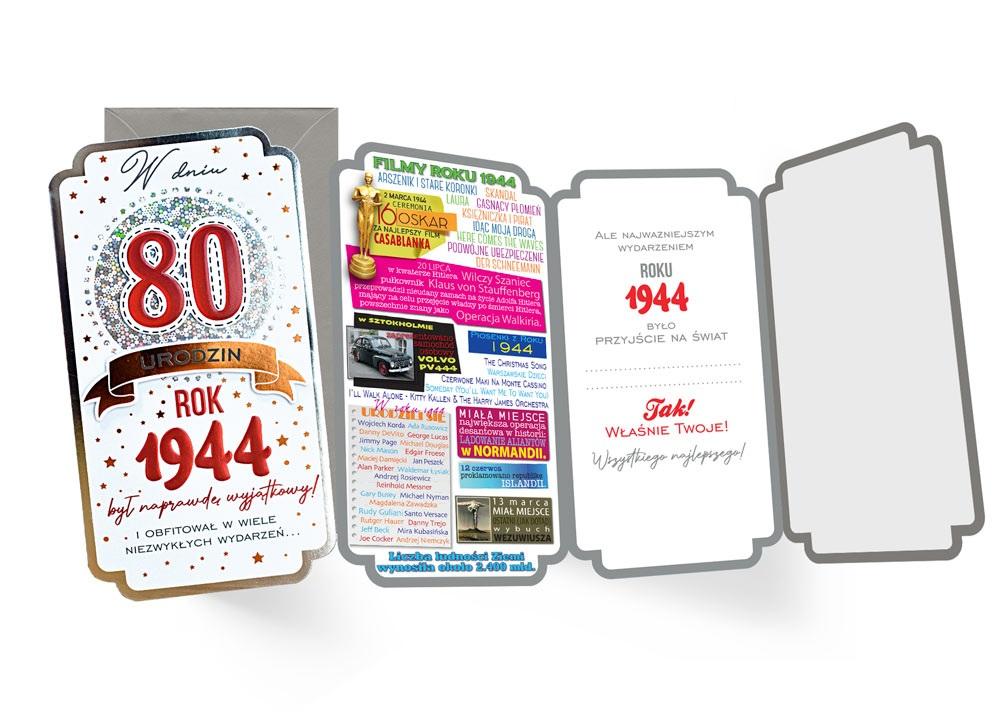 Kartki z serii Roczniki Passion Moments to zdobione kartki, w których w środku znajdują się ciekawe wydarzenia z danego roku. Na kartce znajdują się dekoracje ze złotej, srebrnej, perłowej lub holograficznej folii, a także doklejki biżuteryjne, kokardki, brokat, laserowe wycięcia, wstążeczki i inne dodatki. Wnętrze karnetu to zawsze atrakcyjna grafika i tekst życzeń. zdobienie: przynajmniej dwie folie (metaliczne/perłowe/holograficzne), brokat, elementy doklejane, wycięcia laserowe, wstążeczki - w zależności od wzoru, wnętrze: kolorowe, z delikatną grafiką, wyjątkowe życzenia w środku, w komplecie: dopasowana kolorystycznie koperta