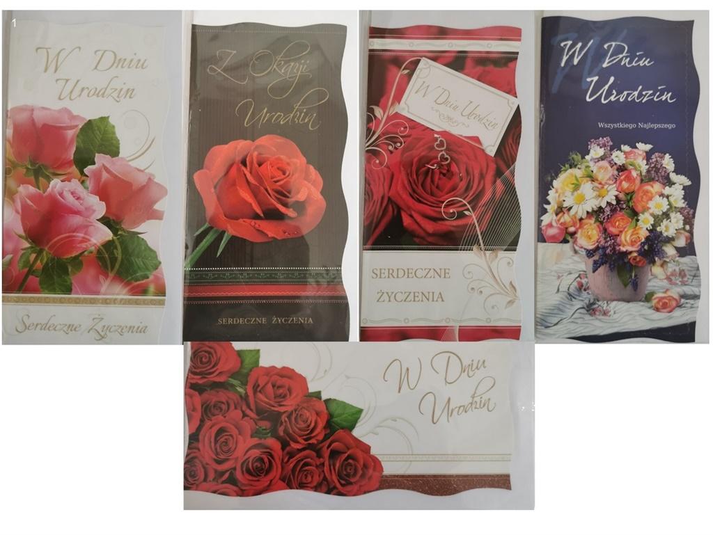 Karnet Urodziny DL + koperta Panorama, mix wzorów, wzór wysyłany losowo.