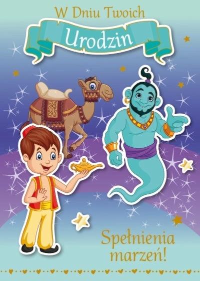 Karnet okolicznościowy z kopertą i życzeniami w środku.