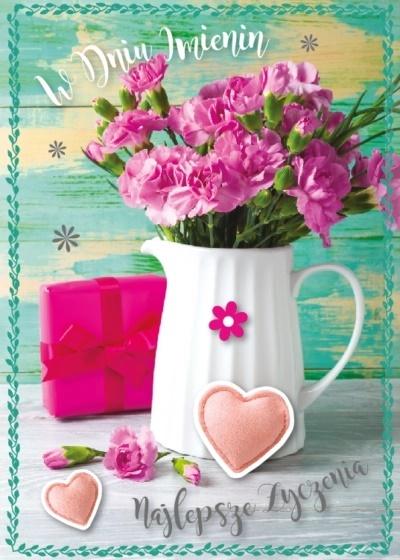 Karnet okolicznościowy z kopertą i życzeniami w środku.