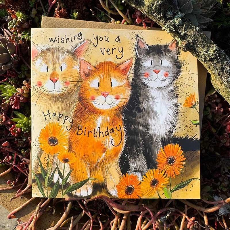 Karnet Urodziny Koty i nagietki