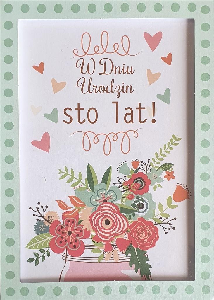 Karnet okolicznościowy z kopertą i życzeniami w środku.
