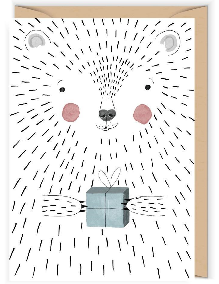 Otwierana kartka, pusta w środku, wykonana na papierze (z certyfikatem EFC) z wyraźnie widoczną fakturą. W zestawie ekologiczna koperta.