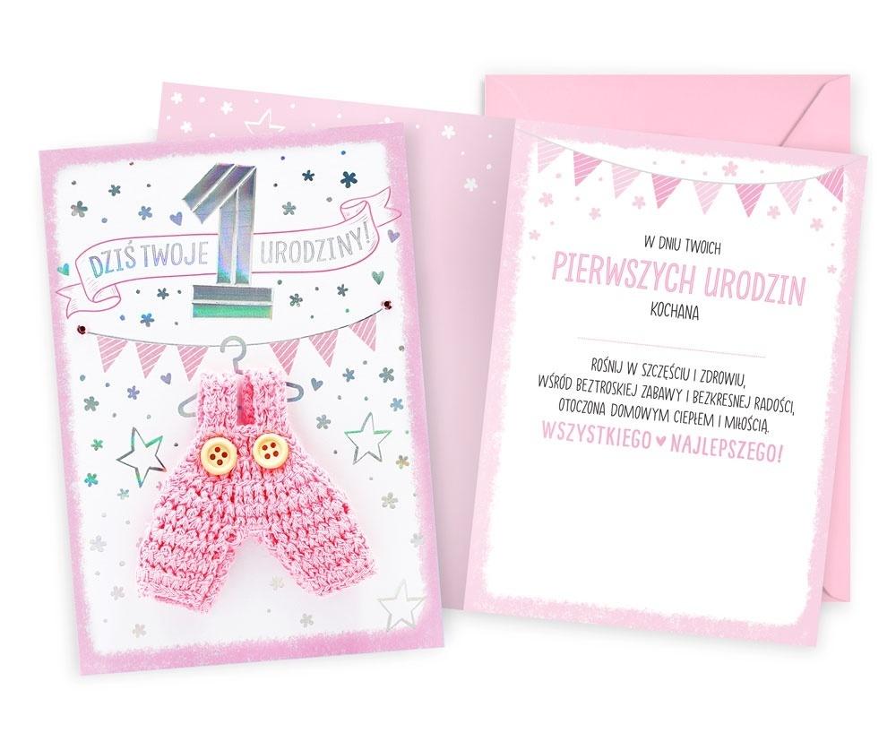 Kartka Dream Cards "Dziś Twoje 1 urodziny" DK-1230 Kartka B6 z ozdobnej serii Dream Cards na urodziny z wymiennymi cyframi - nieduża, ale robi wrażenie dzięki atrakcyjnej kolorystyce i ciekawym zdobieniom. To idealny wybór łączący przyjazną cenę z jakością. Cechy szczególne: wielkość: B6, 16.6 x 11.7 cm po złożeniu, koperta: w zestawie, kolorowa, zdobienia: kolorowe, różnorodne, bogate (w zależności od wzoru: przyklejane dekoracje, elementy biżuteryjne, odstawniki, metaliczne folie, tłoczenia itp.), okazja: urodziny 1, roczek