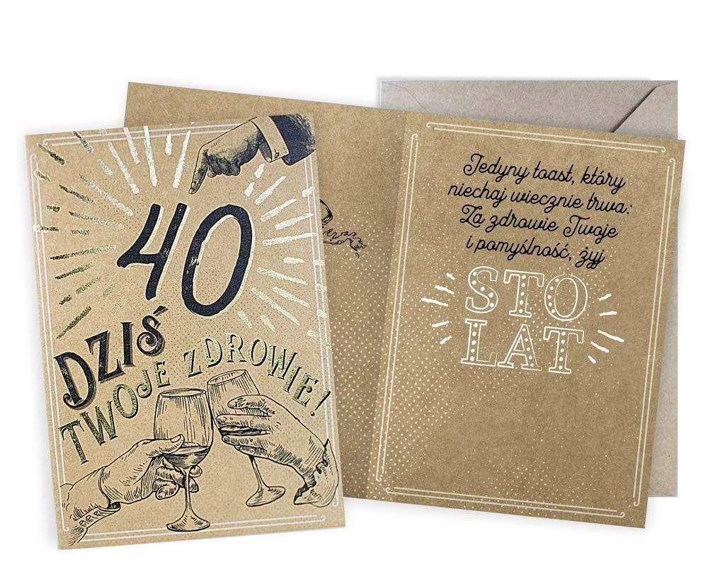 Kartka z serii Vintage, w powiększonym tzw. Angielskim formacie 140x190 mm. Wykonana na papierze kraft z niezwykłą dbałością o szczegóły, zdobiona metalizowaną folią. Wewnątrz znajduje się tekst życzeń, a całość uzupełnia dopasowana kolorystycznie koperta. okazja: urodziny