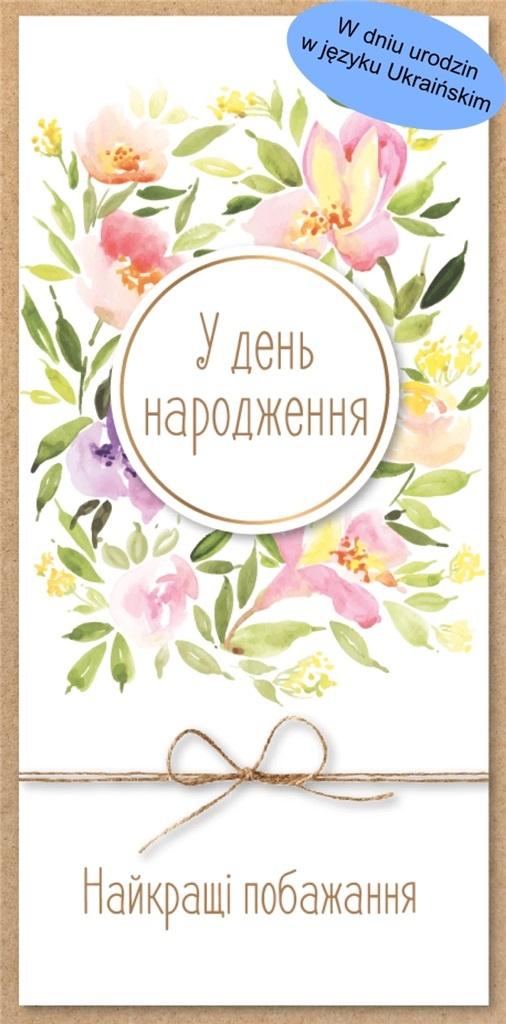 Karnet okolicznościowy z kopertą i życzeniami w środku.
