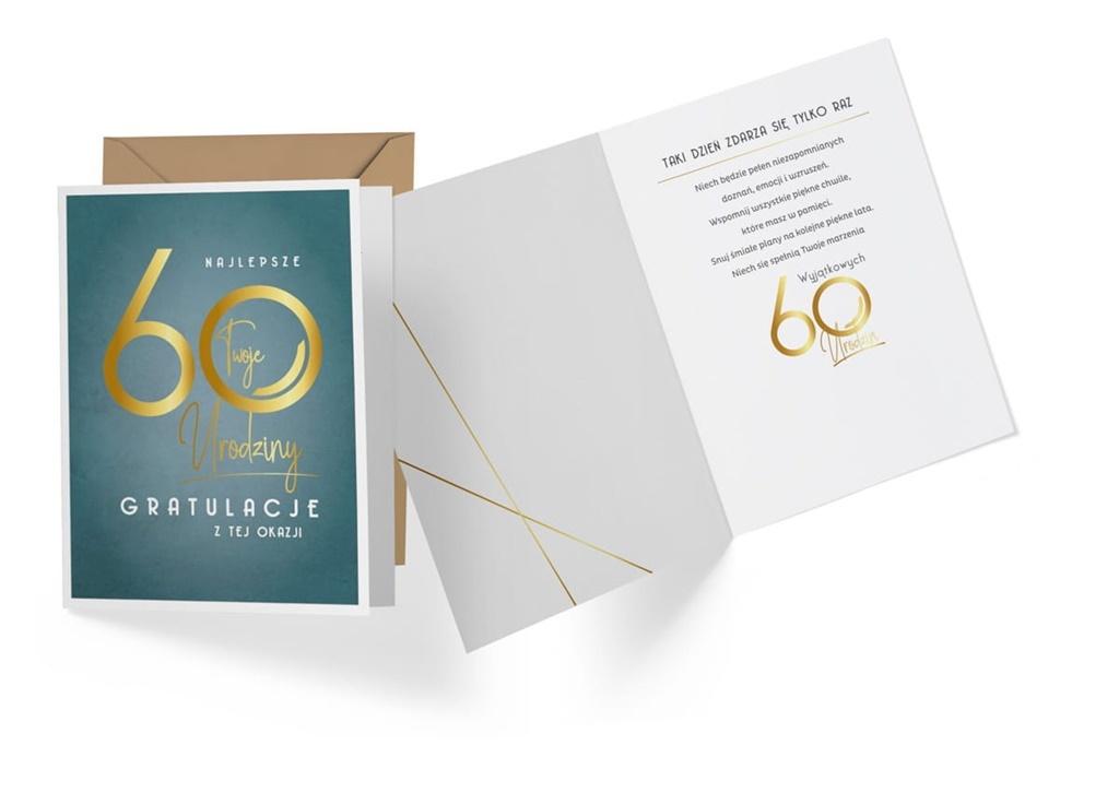 Karnet w powiększonym tzw. Angielskim formacie 140x190 mm. Wykonany z niezwykłą dbałością o szczegóły, zdobiony folią holograficzną i w całości pokryty folią matową dla podkreślenia efektu prostoty i elegancji. Wewnątrz znajduje się tekst życzeń, a całość uzupełnia dedykowana koperta.