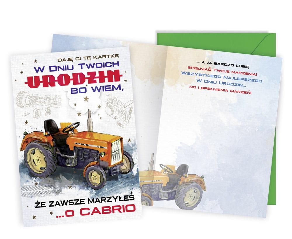 Karnet Vision w powiększonym tzw. Angielskim formacie 140x190 mm. Wykonany z niezwykłą dbałością o szczegóły, zdobiony złotą, matową folią. Wewnątrz znajduje się tekst życzeń, a całość uzupełnia dopasowana kolorystycznie koperta. okazja: Urodziny