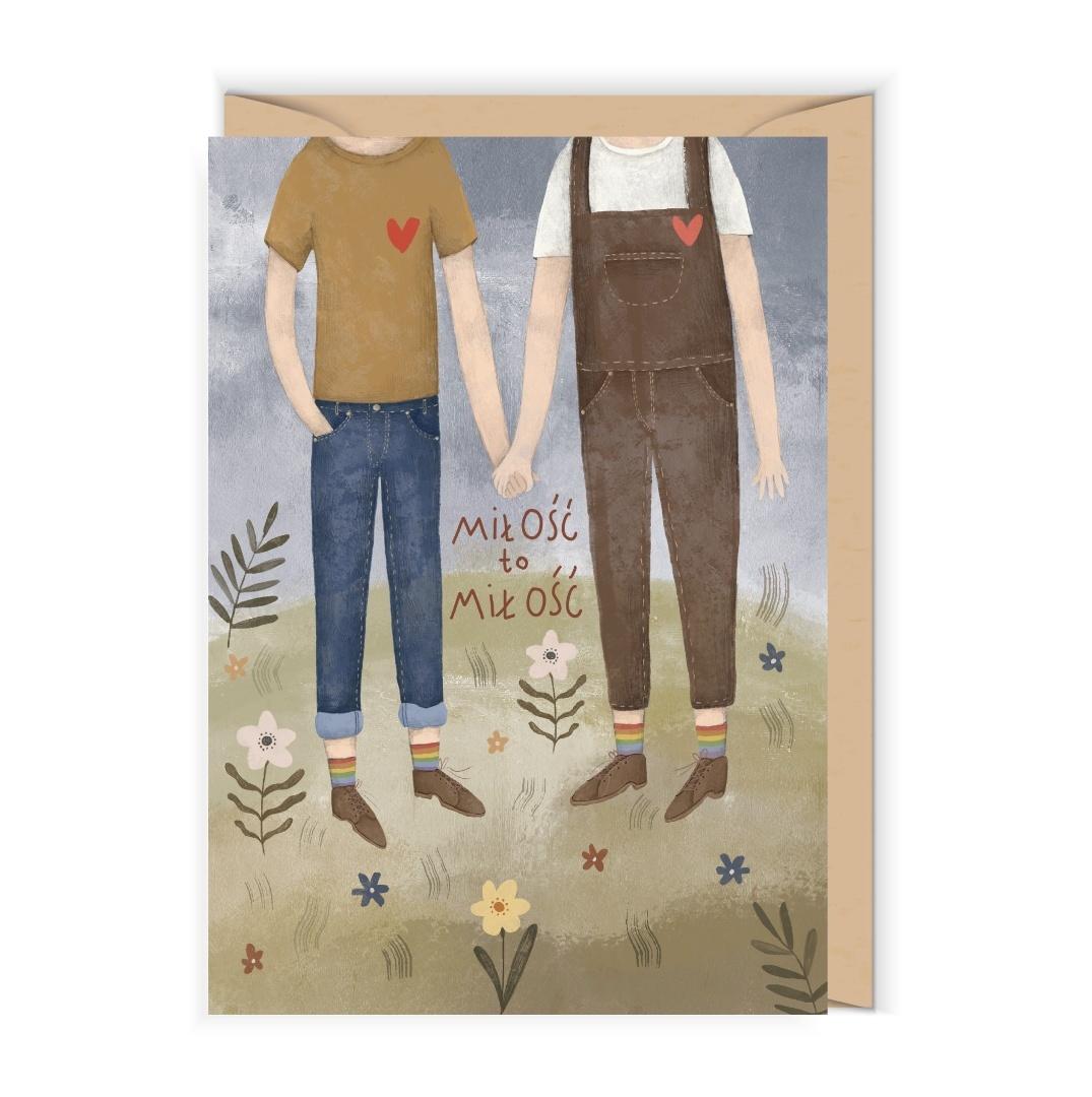 Otwierana kartka, pusta w środku, wykonana na papierze (z certyfikatem EFC) z wyraźnie widoczną fakturą. W zestawie ekologiczna koperta.
