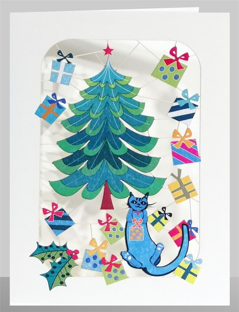Karnet XP42 wycinany + koperta Święta Kot choinka