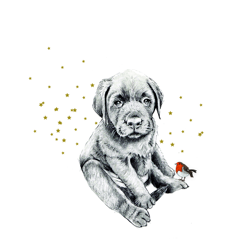 Opakowanie Karnet złocony KW Piesek i ptaszek