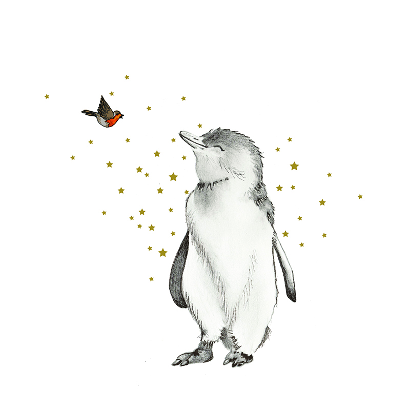 Opakowanie Karnet złocony KW Pingwin i ptaszek