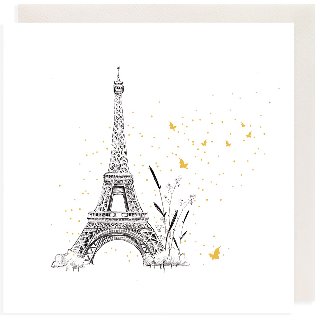 Opakowanie Karnet Złocony kwadrat CL3805_BL Wieża Eiffla