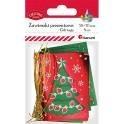Karnety prezentowe Boże Narodzenie 50 x 70 mm, 4 wzory metalizowane: cukrowa laska, prezent, skarpeta 8 sztuk + sznureczek 1,5 m.