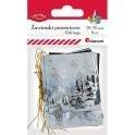 Karnety prezentowe Boże Narodzenie 50 x 70 mm, 4 wzory metalizowane: zimowy krajobraz z reniferami, wilgami, saniami Mikołaja, wiewiórką 8 sztuk + sznureczek 1,5 m.