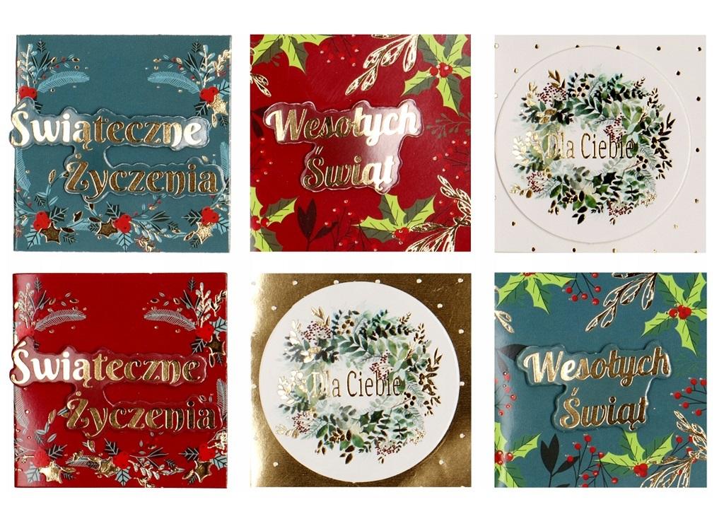 Opakowanie Karnety samoprzylepne 5x5cm Wesołych Świąt 12szt