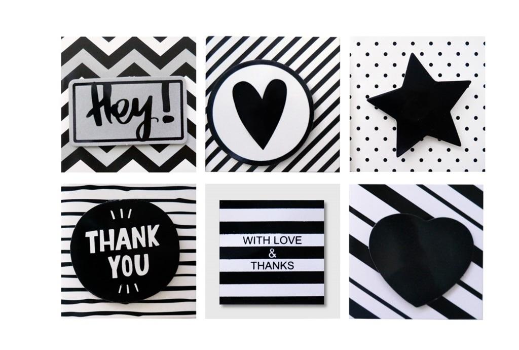 Zestaw 12 sztuk biało-czarnych, samoprzylepnych karnetów do podpisywania prezentów