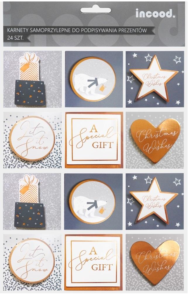 Opakowanie Karnety samoprzylepne do prezentów złote+3D 24szt