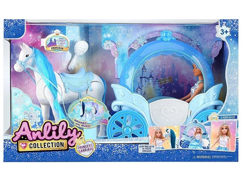 karoca z lalką 29cm i chodzącym koniem, na baterie, z muzyką; 57x34,5x17,5cm