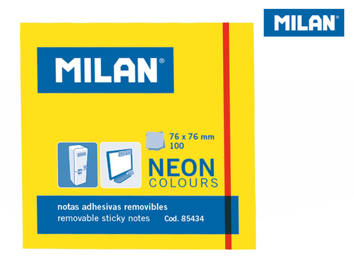 Opakowanie Karteczki Milan neonowe 75x75 mm żółte, 80 sztuk