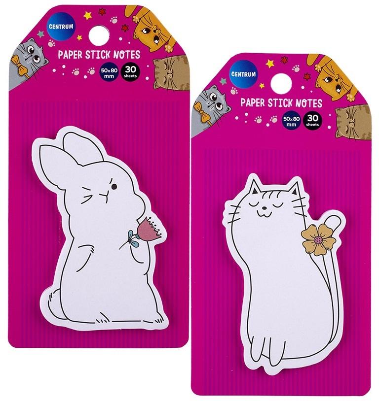 Karteczki samoprzylepne w słodkich motywach królika i kotka.