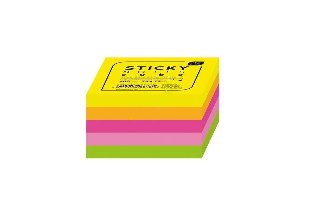 Blok kolorowych karteczek samoprzylepnych wielokrotnego użytku. Nie pozostawiają śladu po odklejeniu. Format: 75x75 mm. 5 kolorów. 300 szt.