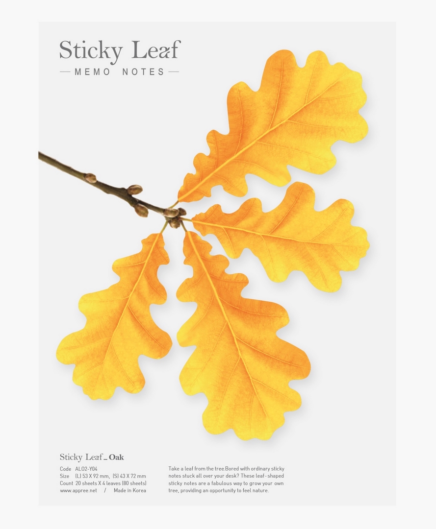Karteczki samoprzylepne indeksujące w kształcie liści dębu. Każdy listek papieru jest samoprzylepny, dzięki temu znajdzie zastosowanie jako klasyczna kartka do notatek oraz jako zakładka indeksująca. Wykorzystasz je w domu, biurze, w planerach, książkach. W fantastyczny i kreatywny sposób można je również wykorzystać do scrappbookingu oraz bullet journalingu.