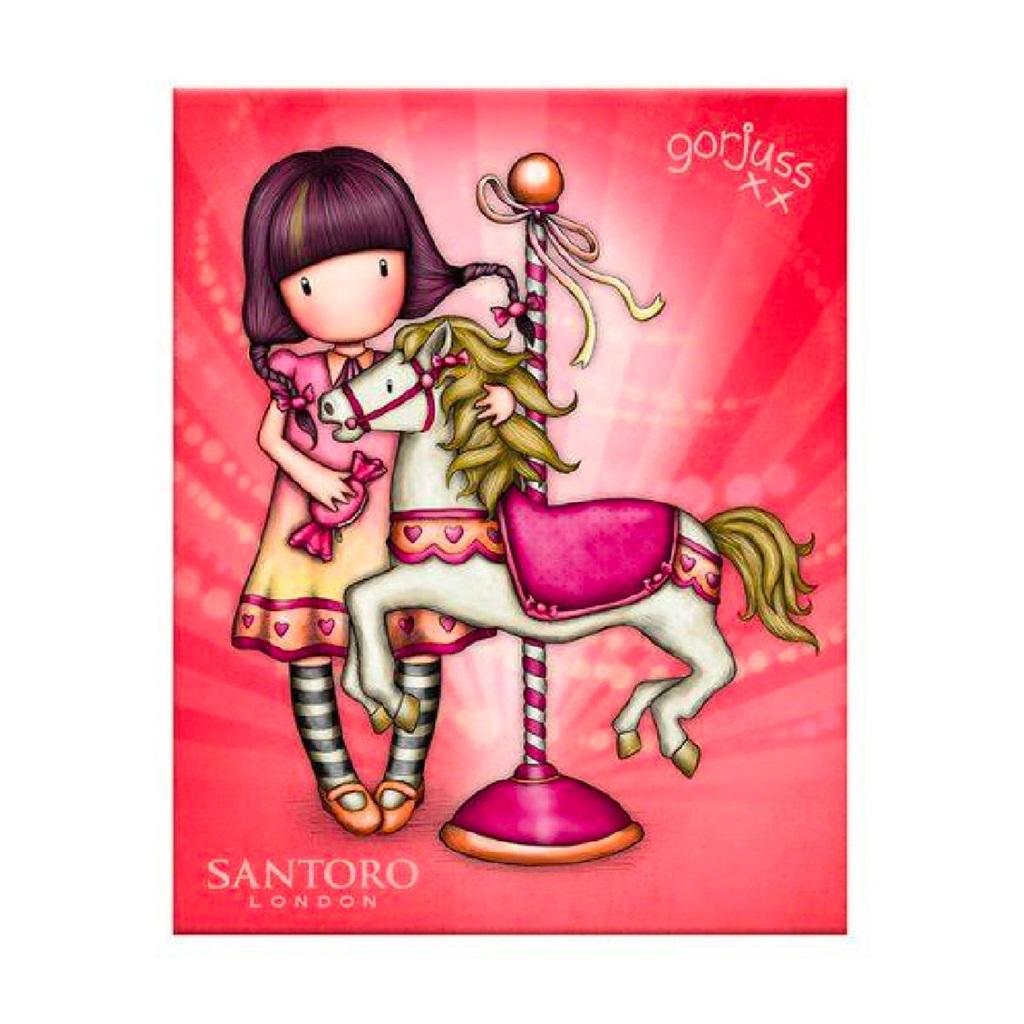Fantastyczna seria Carousel ozdobiona jest dziewczynką Gorjuss z uroczym konikiem utrzymana w słodkich różowych kolorach. Na odwrocie fajerwerki, kolorowe girlandy, cukrowa wata - wszystko co znajdziemy w wesołym lunaparku.