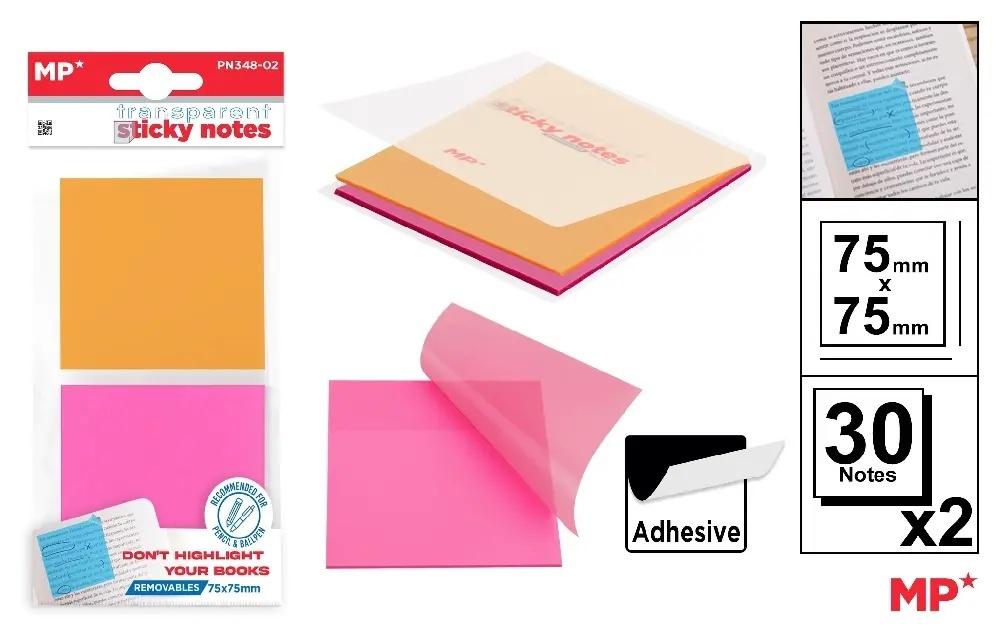 Karteczki samoprzylepne przezrocz 75x75mm 2x30szt