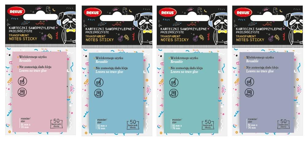 Opakowanie Karteczki samoprzylepne przeźroczyste 50szt mix