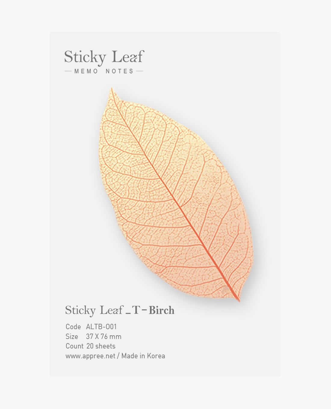 Karteczki samoprzylepne indeksujące transparentne w kształcie liści brzozy.