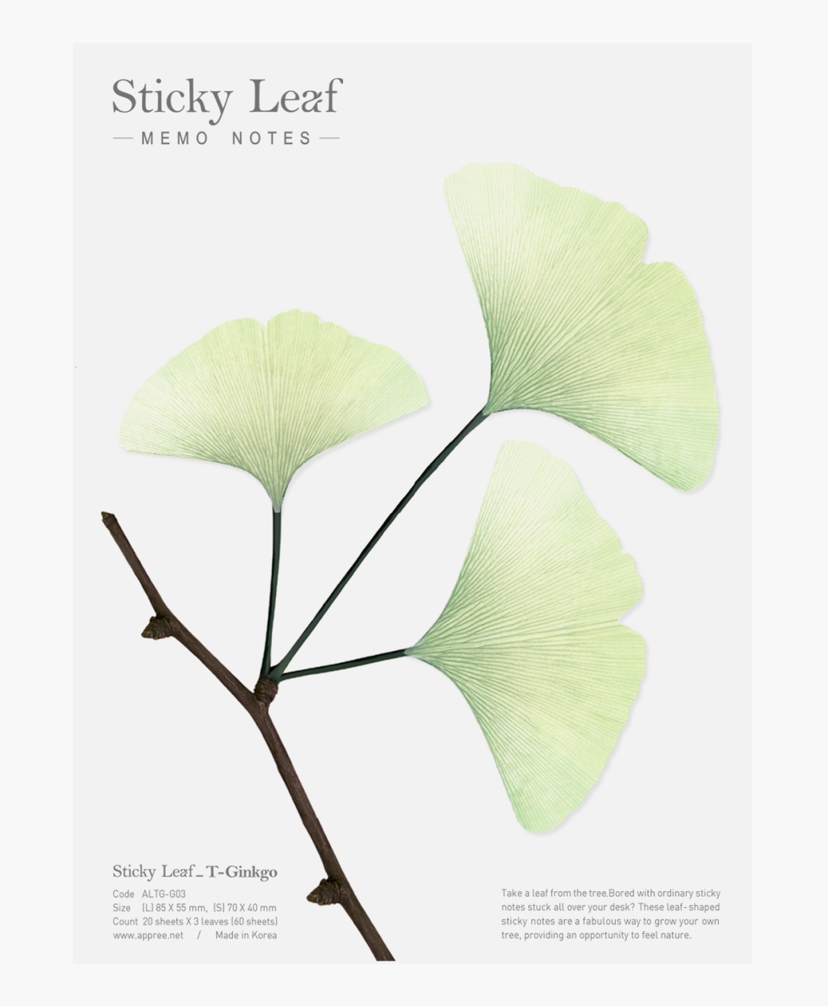 Karteczki samoprzylepne indeksujące transparentne w kształcie liści miłorzębu.