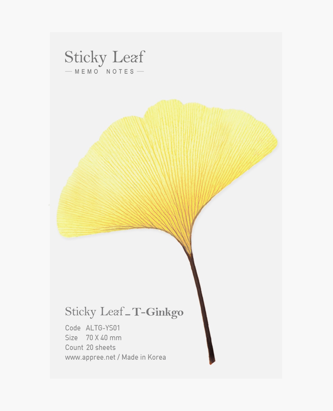Karteczki samoprzylepne indeksujące transparentne w kształcie liści miłorzębu.
