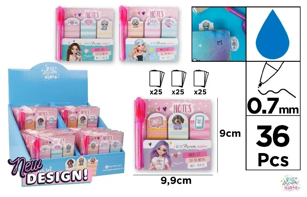 Zestawy dostępne w 3 różnych wariantach. Każdy wariant zawiera 3 różne wzory karteczek (po 25 karteczek każdy).