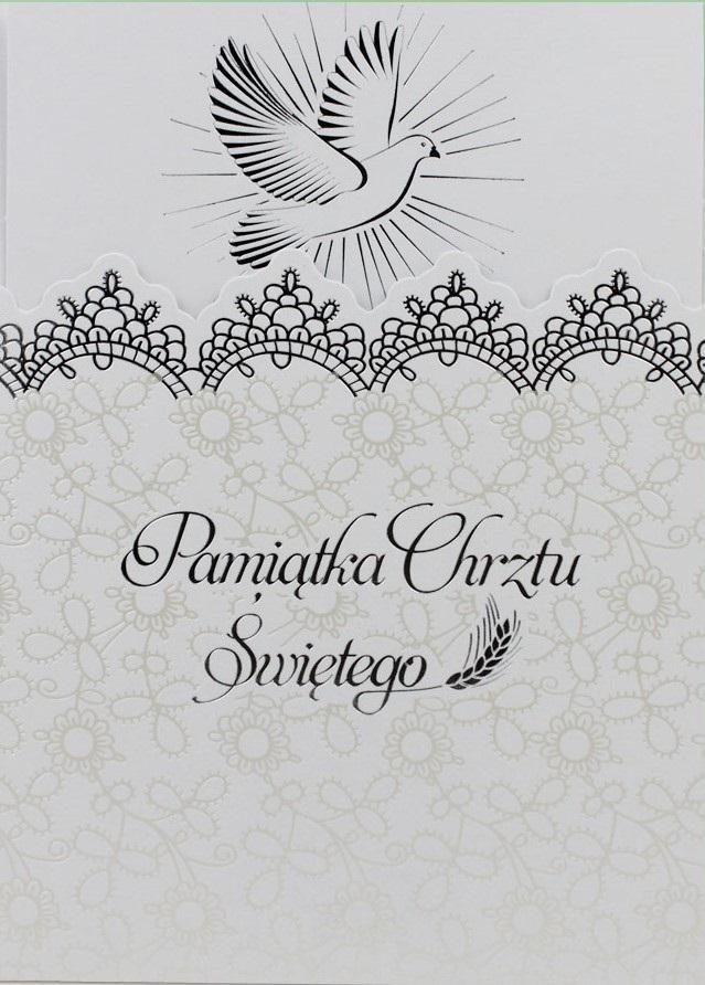 "Kartka okolicznościowa na Chrzest Święty SUPER LUX z życzeniami. USZLACHETNIENIA: w zależności od projektu graficznego pojawia się: folia (złota, srebrna, multikolor-holografik), elementy 3D, cekiny lub cyrkonie. Zrobione metodą hotstampinku. (metalik) Do każdej kartki dołączona jest koperta 100 gsm w pasującym do projektu kolorze. Całość zabezpieczona jest folią."