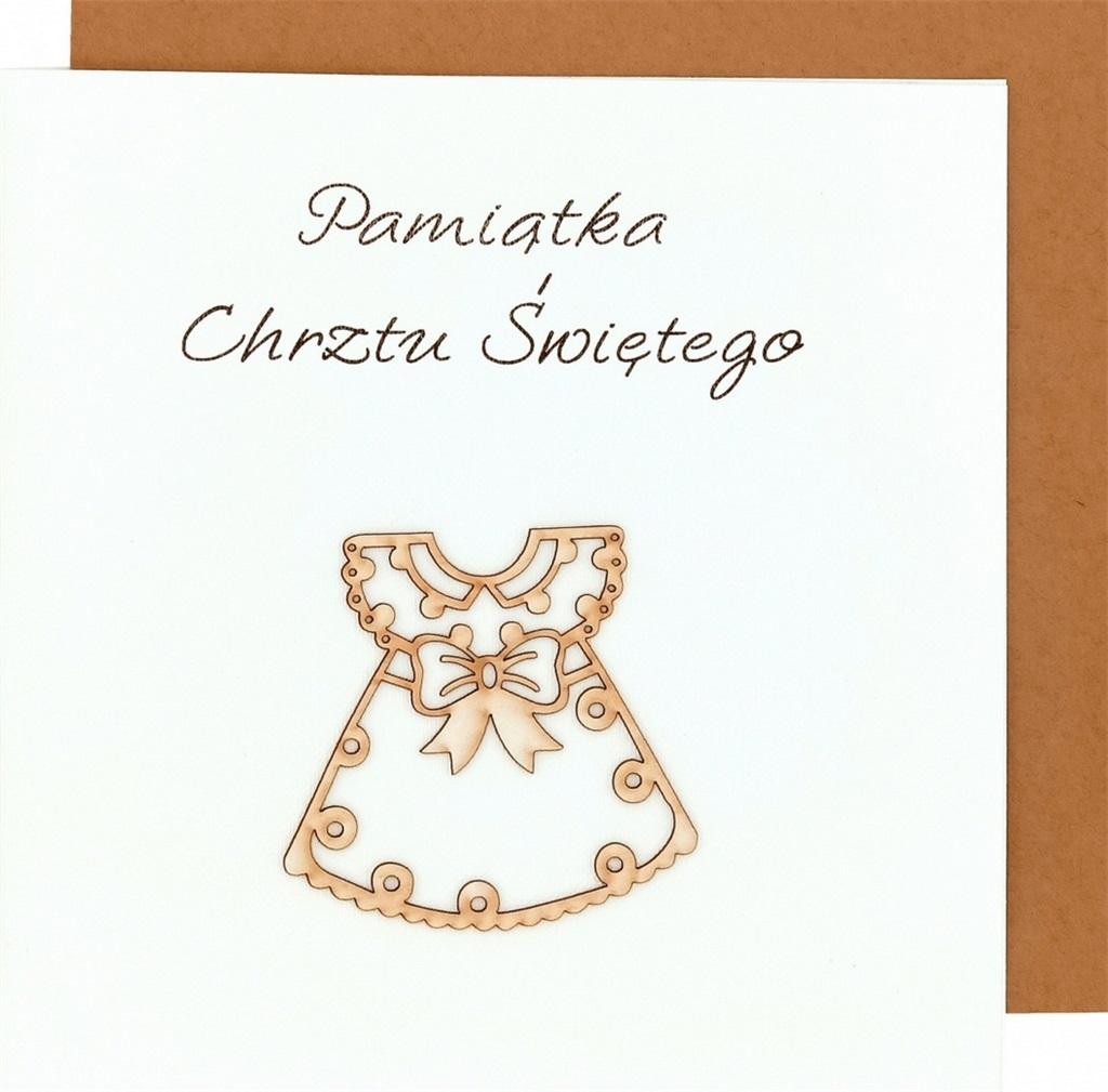 Kartka okolicznościowa z okazji Chrztu Świętego o treści: Bądź pozdrowiona dziecino w tym Dniu uroczystym, niech Twoje serce pozostanie pięknym i czystym. Oby życie Twe w szczęśliwości upłynęło, bo tak się pięknie zaczęło! Niechaj Chrzest Święty Cię mocą obdarzy i nic złego Ci się nie przydarzy! Patrz z nadzieją na całe swe życie, żyj w radości i dobrobycie!