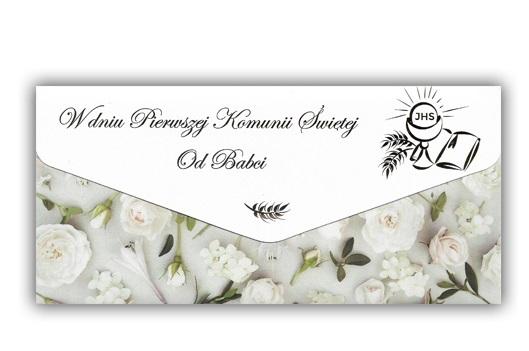 Po złożeniu format kartki DL, wyjątkowe złocenia, w środku życzenia i kieszonka na pieniądze. Dodatkowa koperta