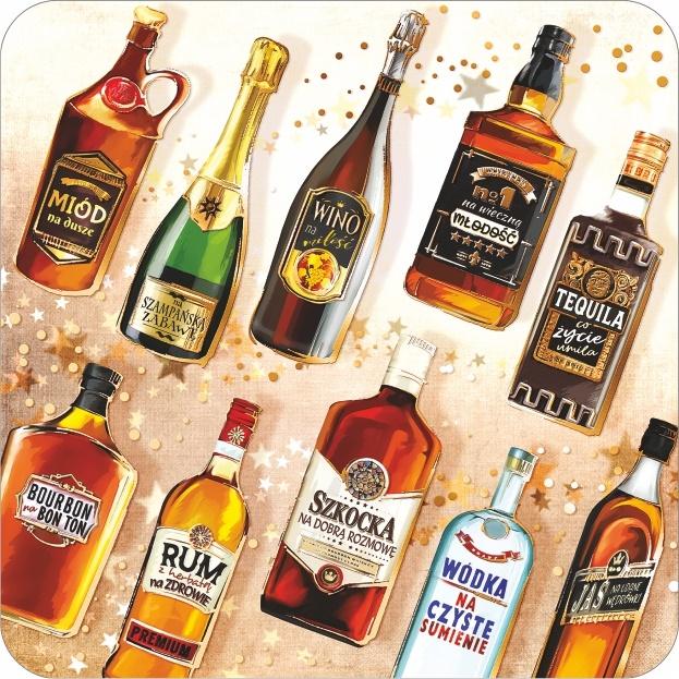 Karnet kwadratowy z wkładką z życzeniami oraz czerwoną kopertą.