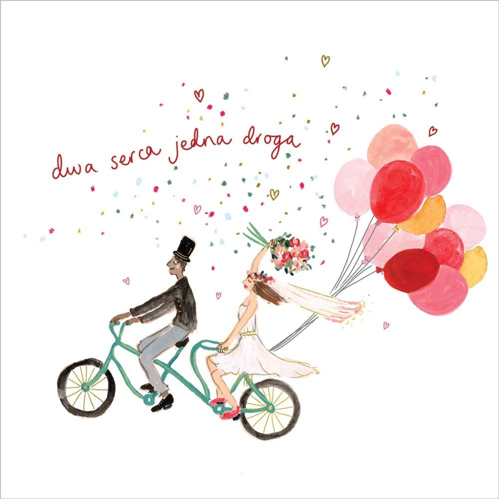 Karnet ślubny z kopertą, złocony, tekst życzeń w środku.