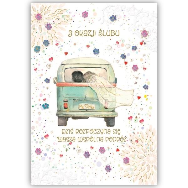 format B6, ekskluzywny papier, wypukłe złocenia, tłoczenia 3D, życzenia wewnątrz, kolorowa koperta