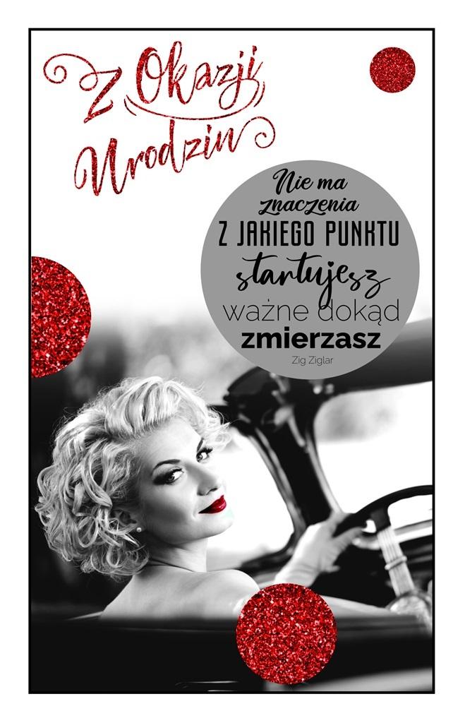Elegancki, zdobiony karnet okolicznościowy z kopertą i życzeniami w środku.