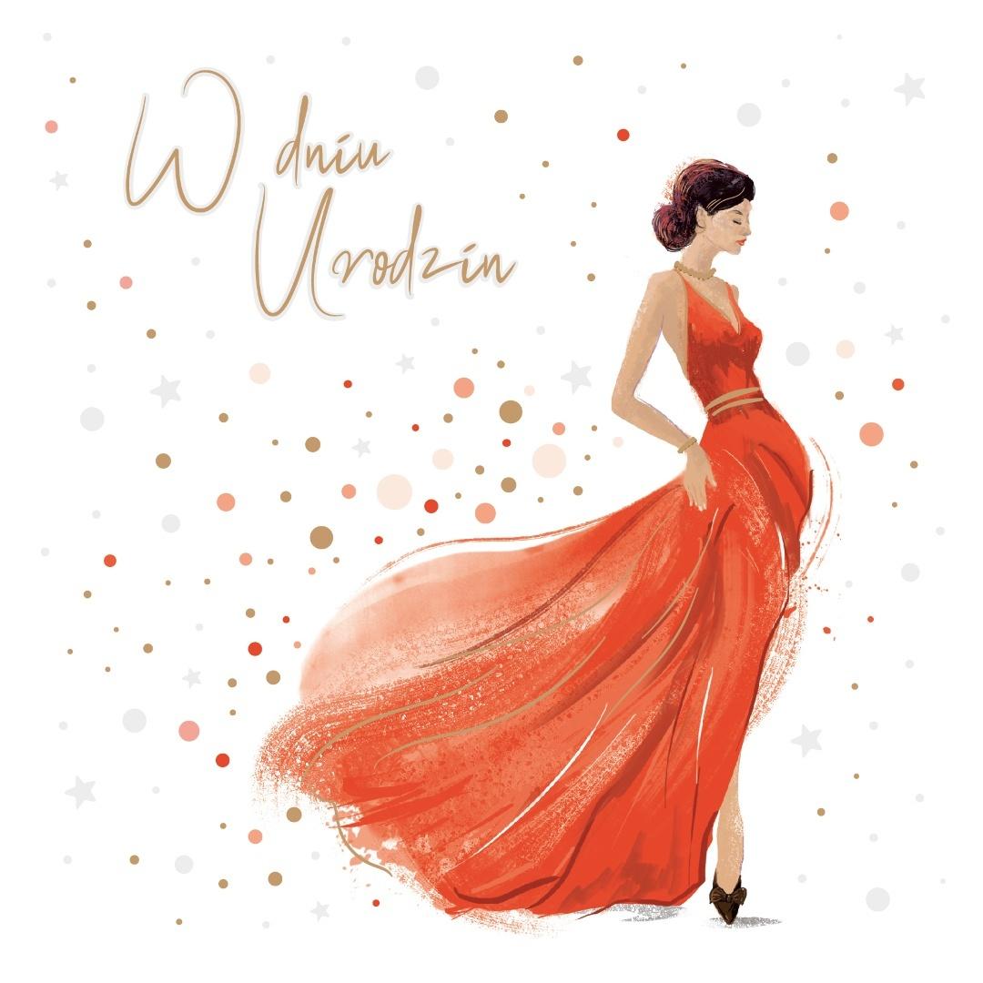Karnet urodzinowy, złocony i tłoczony, tekst życzeń w środku.