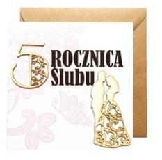 Kartka okolicznościowa z okazji rocznicy Ślubu o treści: Dla cudownej pary, z najlepszymi życzeniami, By szczęście nie znało miary, By codziennie świeciło słońce, A Wasze uczucie było wyjątkowo gorące.