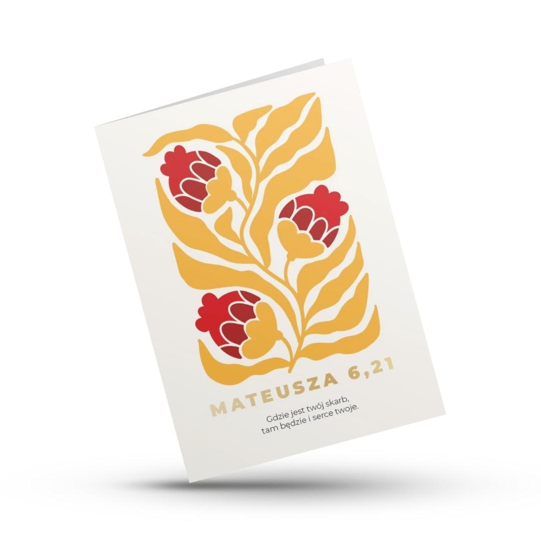 Kartka składana - Mateusza 6,21 | Gdzie jest twój skarb, tam będzie i serce twoje | Złocenie | Papier ekologiczny premium