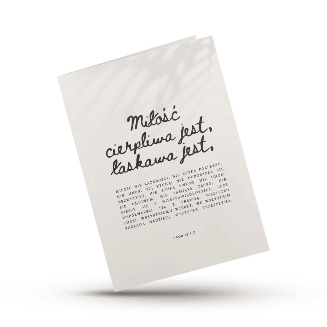 Kartka składana z kopertą 1 Kor 13,4-7 | Miłość cierpliwa jest (kaligrafia)