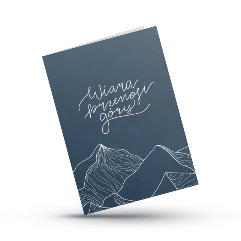 Prosty, minimalistyczny projekt w granatowym odcieniu z subtelnym rysunkiem gór.