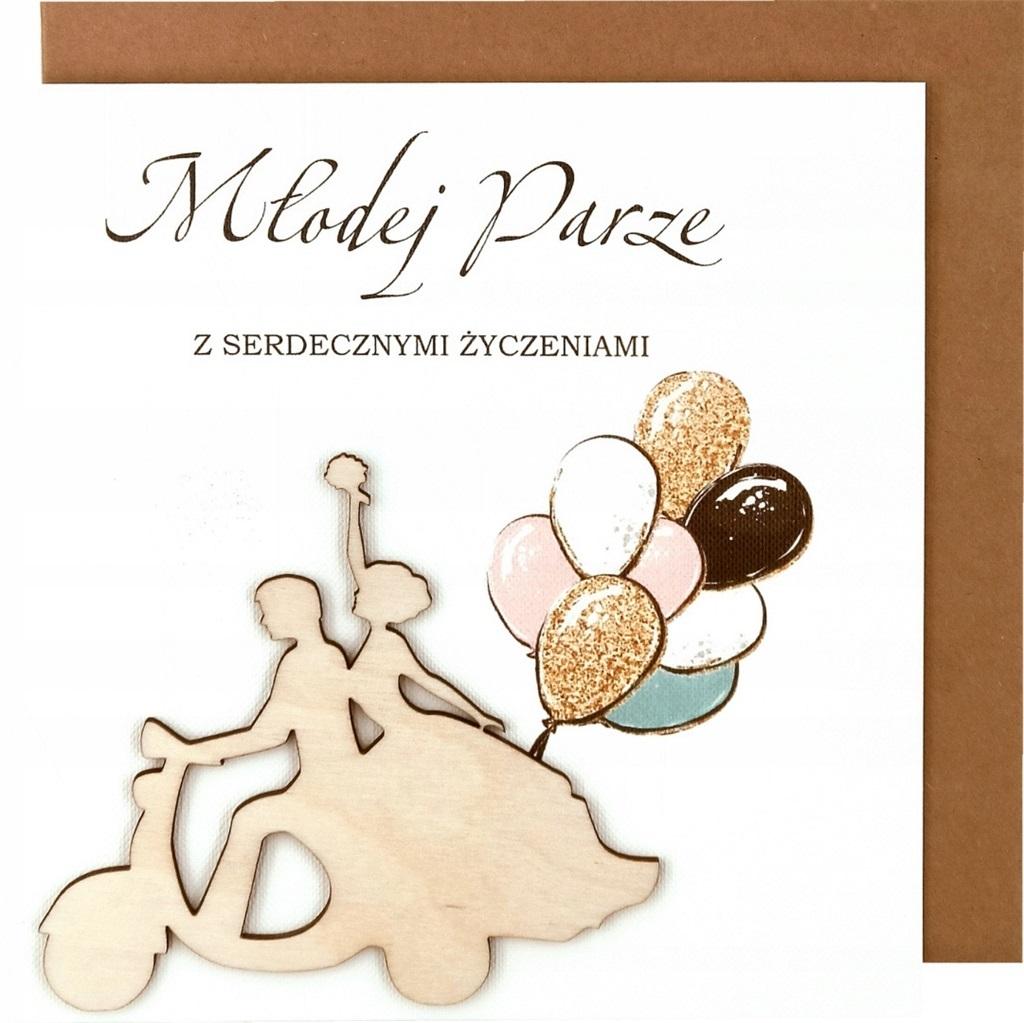 Kartka okolicznościowa z okazji Ślubu o treści: Niech los zawsze ma Was w swojej opiece, A radość, która towarzyszy Wam tego dnia, Niech pozostanie w Waszych sercach przez długie lata. Wiele szczęścia i radości w Dniu Ślubu życzą?