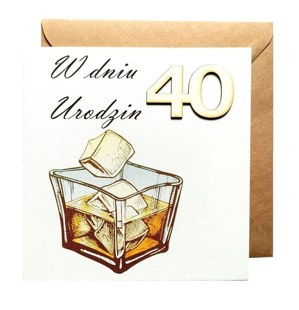 Kartka okolicznościowa z okazji urodzin o treści: 40 roczek Ci stuka, ale nie zalej się dzisiaj w trupa, przyjmij od nas krótkie życzenia ? dużo miłości i marzeń spełnienia, pieniędzy tysiące, dziewczyn pięknych jak słońce, imprez do białego rana, duszy anioła, a nie szatana.