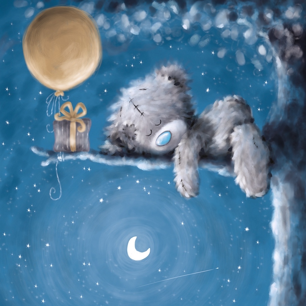 Kartka urodzinowa Miś na gałęzi z prezentem
