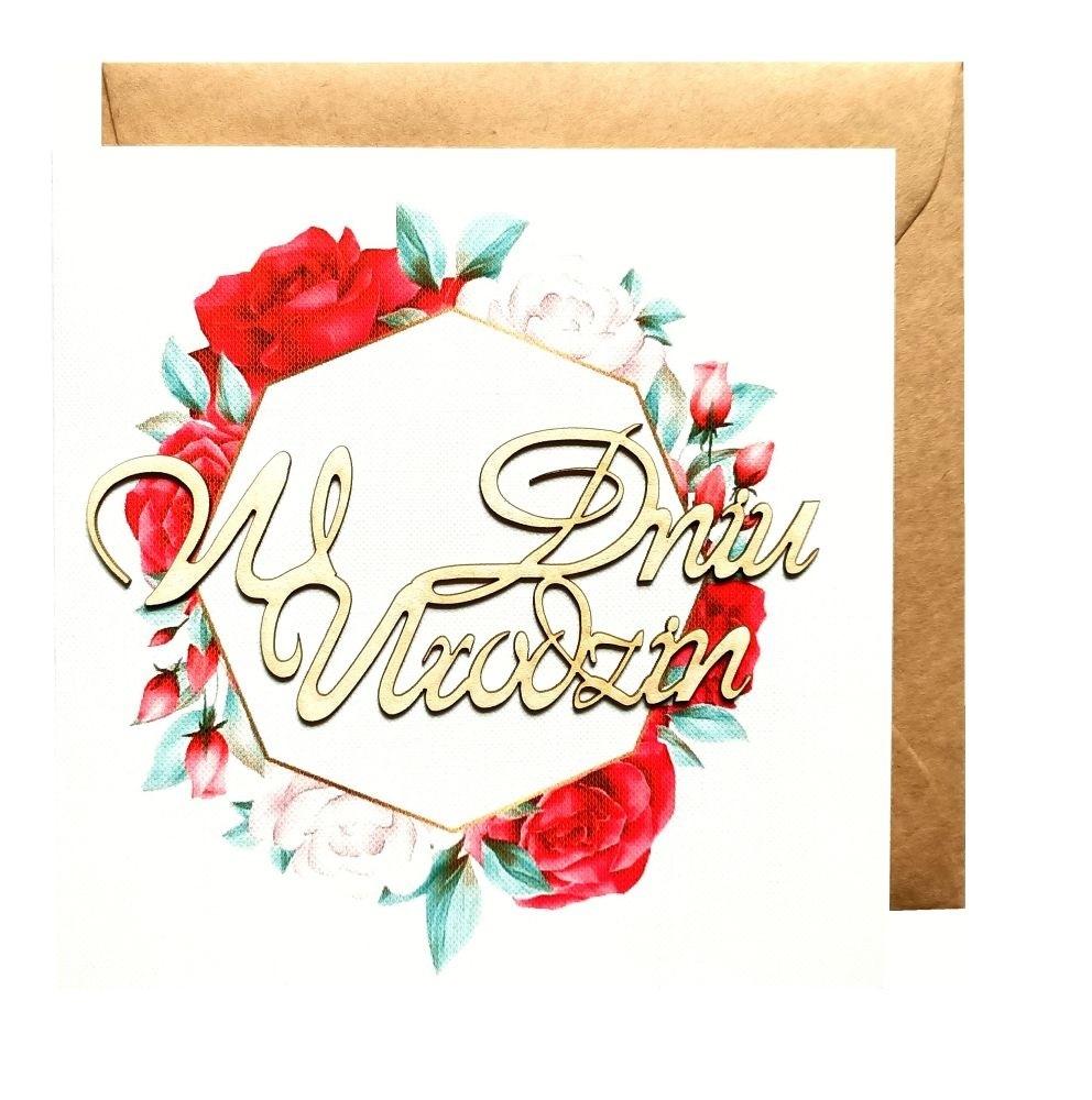 Kartka okolicznościowa z okazji urodzin o treści: W dniu Twych urodzin, każdy szczęścia Ci życzy. Korzystając z tej sposobności, życzę Ci szczęścia i pomyślności, by to, o czym marzysz, się spełniło i to, co kochasz, przy Tobie było.